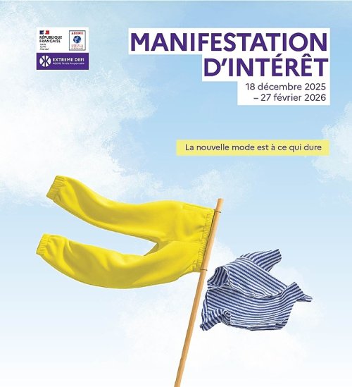Pour plus d’informations : https://www.innoverpourlatransitionecologique.fr/en/challenges/extreme-defi-textile-responsable/pages/appel-a-manifestation-d-interet?lang=fr
